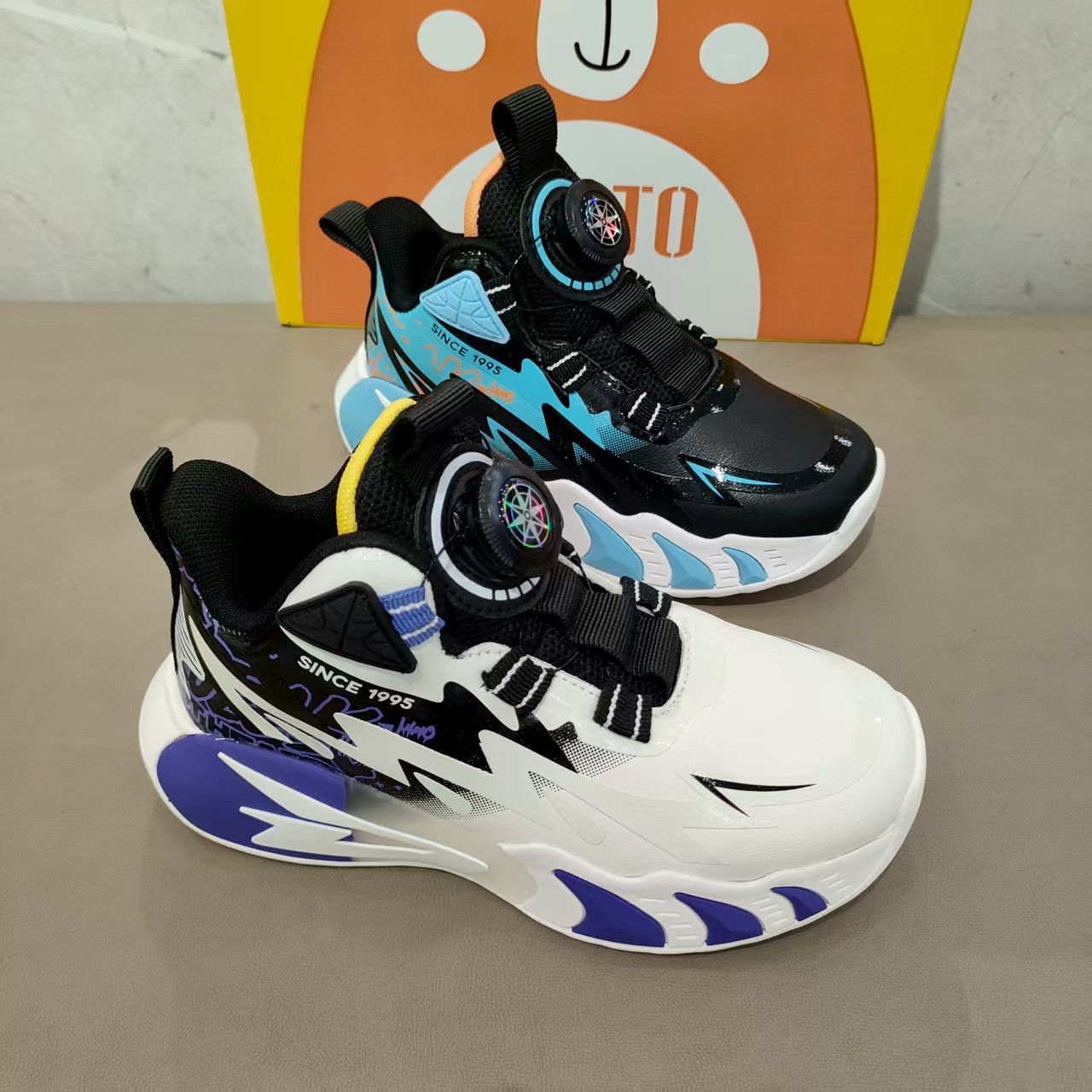 大东童鞋2025秋季新款超轻休闲鞋旋纽扣舒适运动鞋男童篮球鞋1623