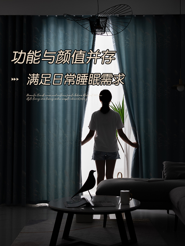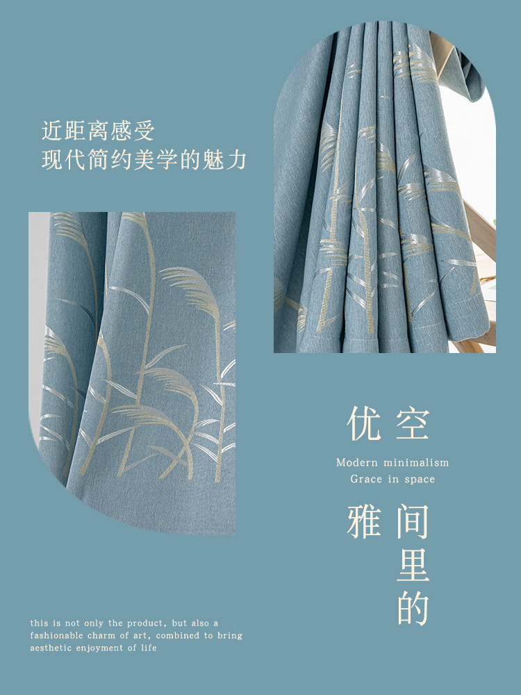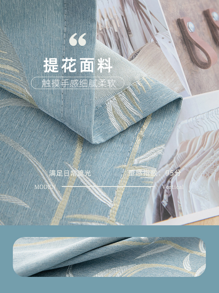 卧室窗帘遮光2023新款客厅奶油风蓝色轻奢现代简约成品布挂钩2024