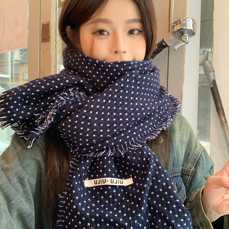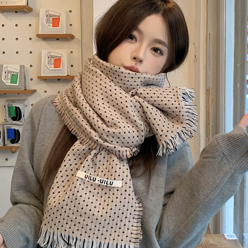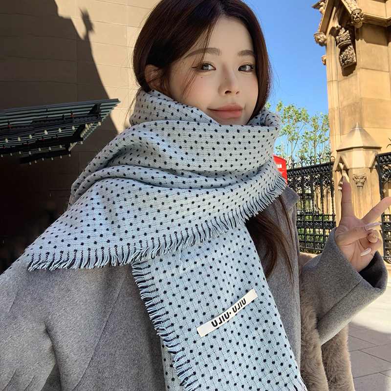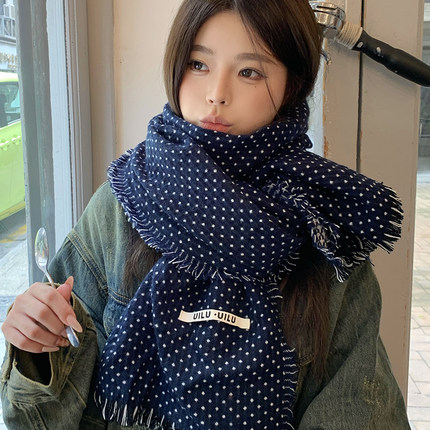 波点针织围巾女冬季韩系氛围感毛线保暖防寒护颈加厚高级感围脖男