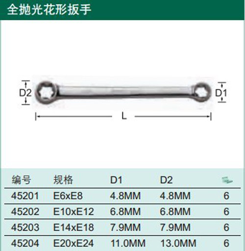 世达公制合金全抛光六角梅花型眼镜扳手组套装E6*E8 E12*E1045201