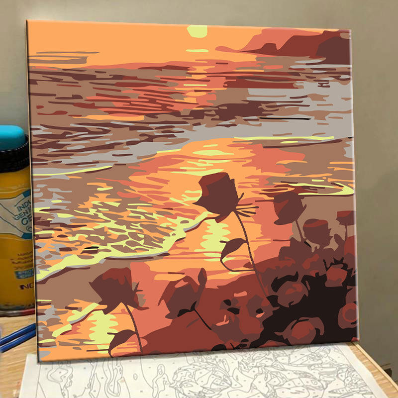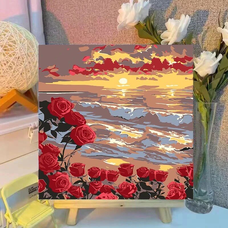 海上玫瑰数字油画diy充填油彩画装饰画风景花卉手工制作女孩礼物