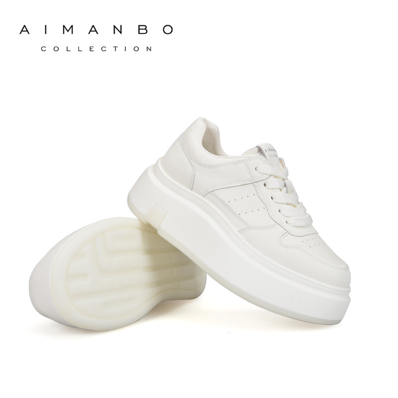 漫步佳人2024冬季新品厚底小白鞋百搭运动休闲鞋增高系带板鞋女鞋
