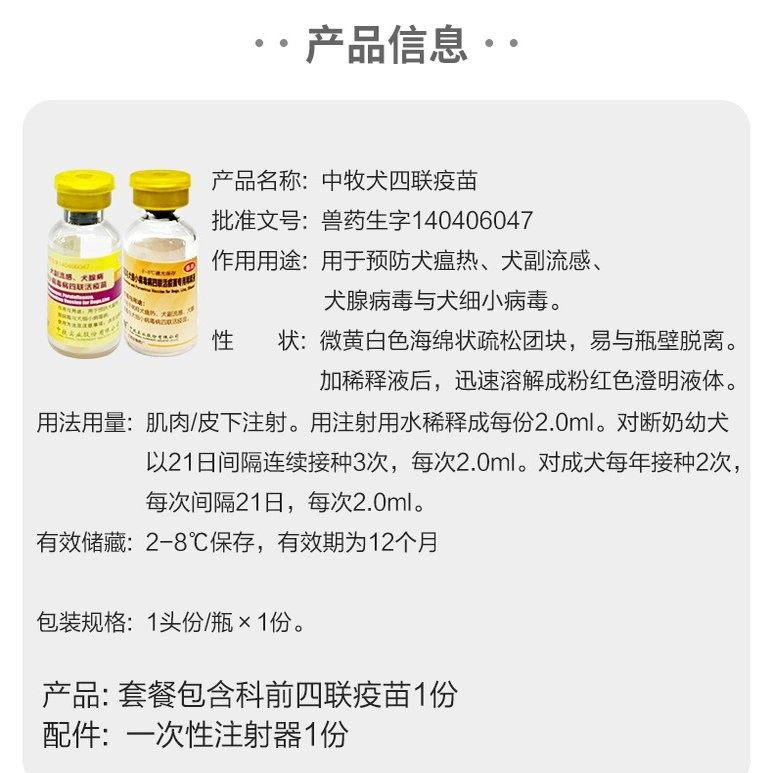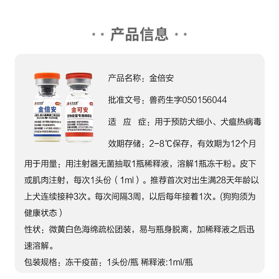 国产金宇生物二联狗狗四联疫苗成犬幼犬预防细小犬瘟狂犬满月打