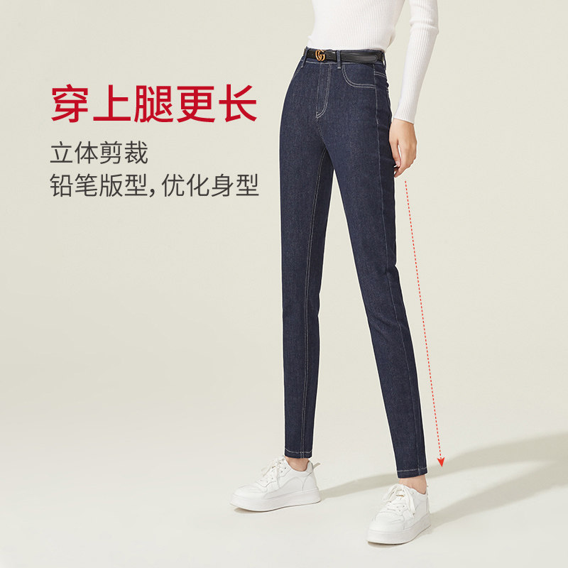逸阳小黑裤不掉色黑色牛仔铅笔裤女2025秋冬新款加绒高腰小脚靴裤