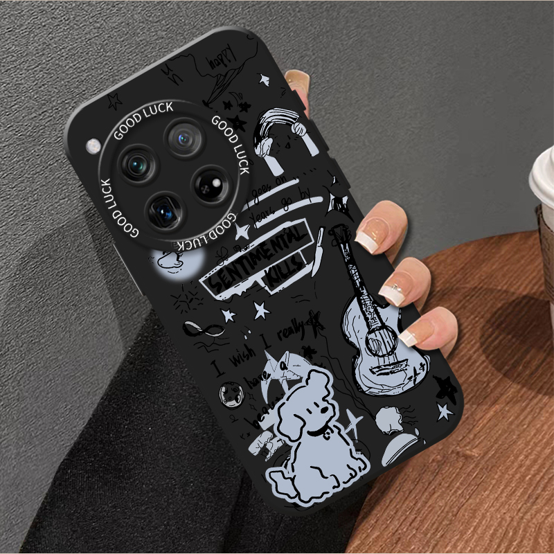 涂鸦吉他适用一加ace5手机壳ace3pro情侣13猫咪t小狗12蝴蝶2v魅族21新款11高级感1+10超火20男9女8/7/oneplus
