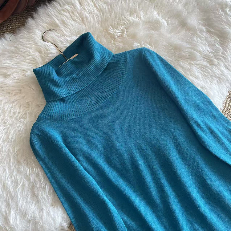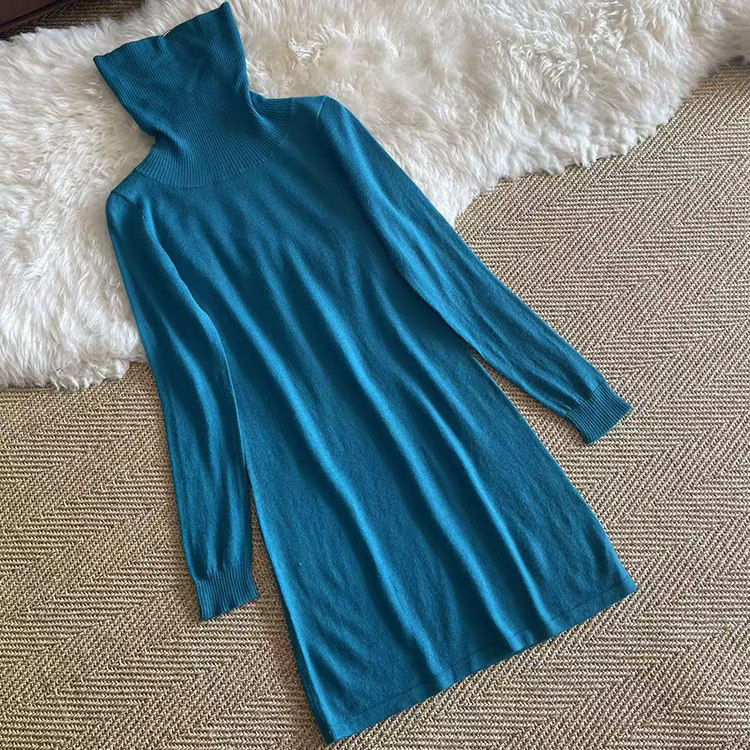 高领100纯羊毛衫女秋冬堆堆领针织中长款打底包臀显瘦修身毛衣裙