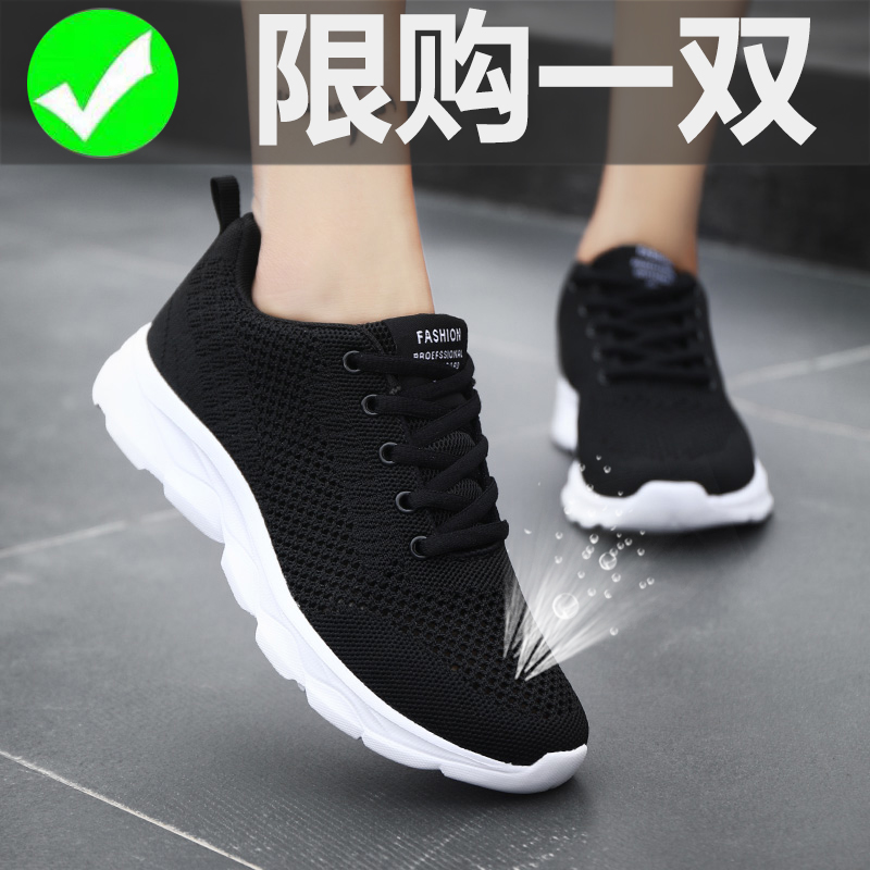 老北京布鞋女春夏网面健步鞋妈妈鞋舒适大码黑色休闲中老年运动鞋