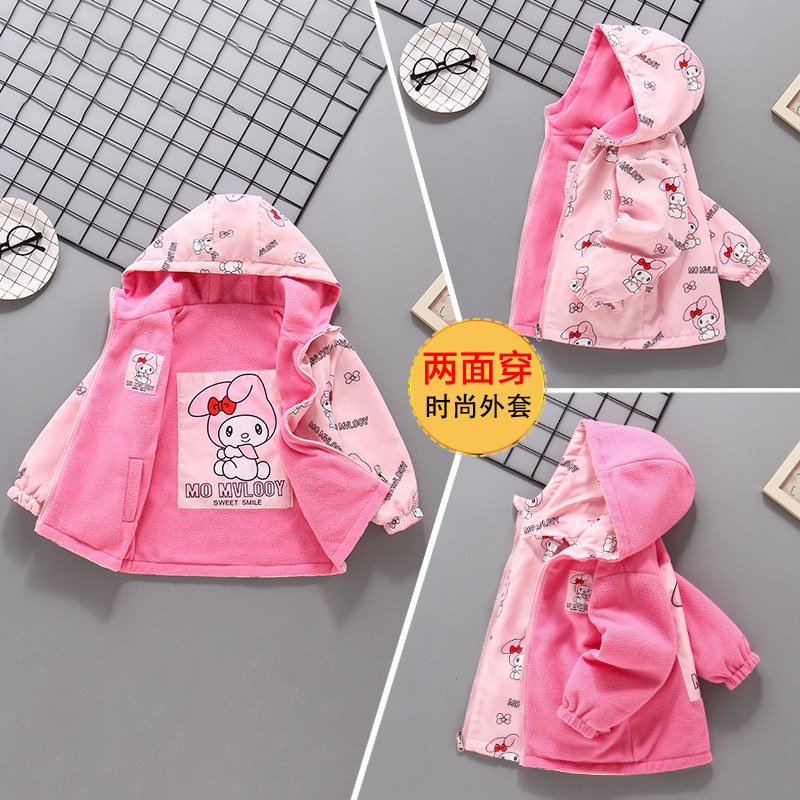女童加绒加厚外套春秋装2025新款双面穿风衣洋气儿童装秋季加厚衣
