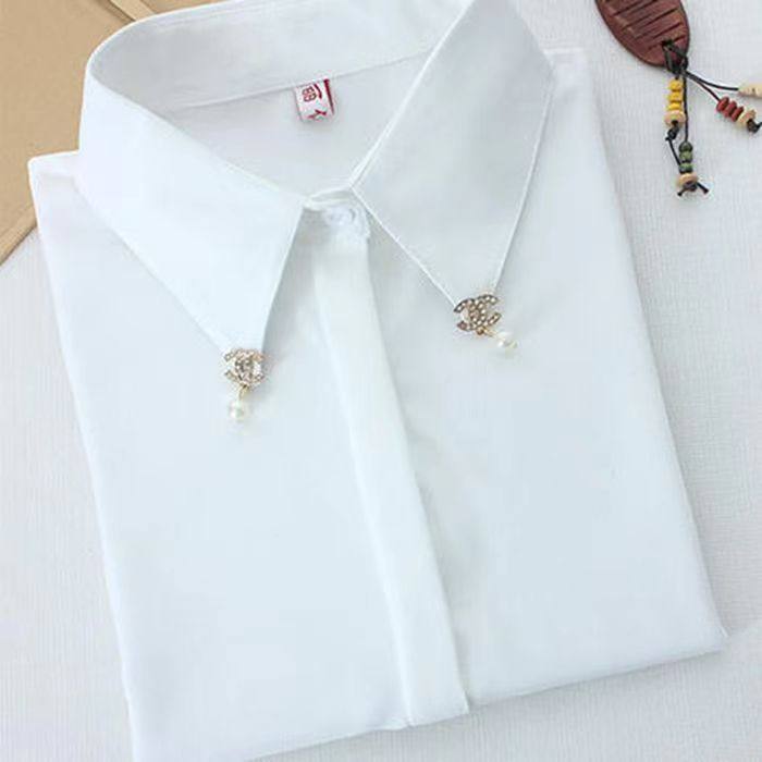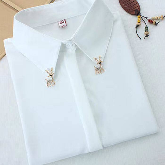 2025秋季新款带钻镶钻领子钉珠白色衬衫女长袖打底翻领百搭衬衣女
