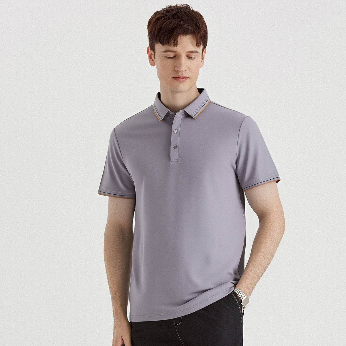 【含桑蚕丝&亚麻】罗蒙男士夏季商务polo衫男透气男士t恤短袖polo