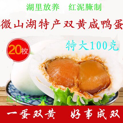 微山湖特产放养特大双黄咸鸭蛋熟流油红心双黄100g20枚包邮
