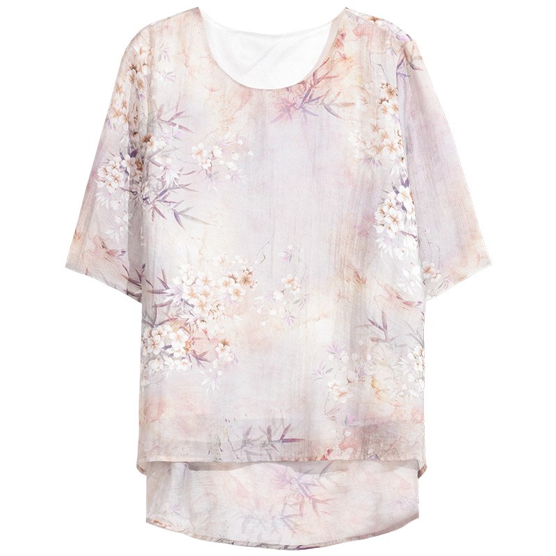 妈妈装夏款洋气雪纺t恤短袖套装时尚小衫高贵阔太太上衣中老年女