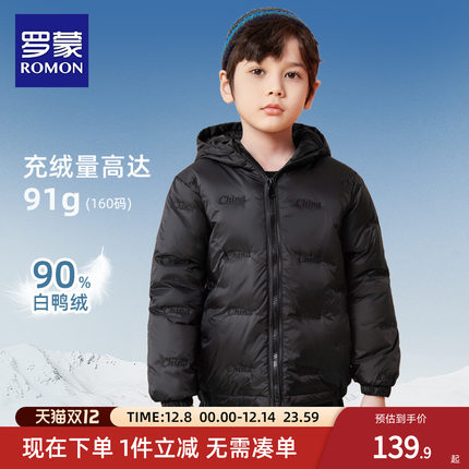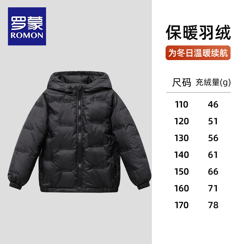 罗蒙儿童轻薄款黑色羽绒服男童保暖加厚2025新款冬季大童外套内胆