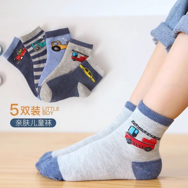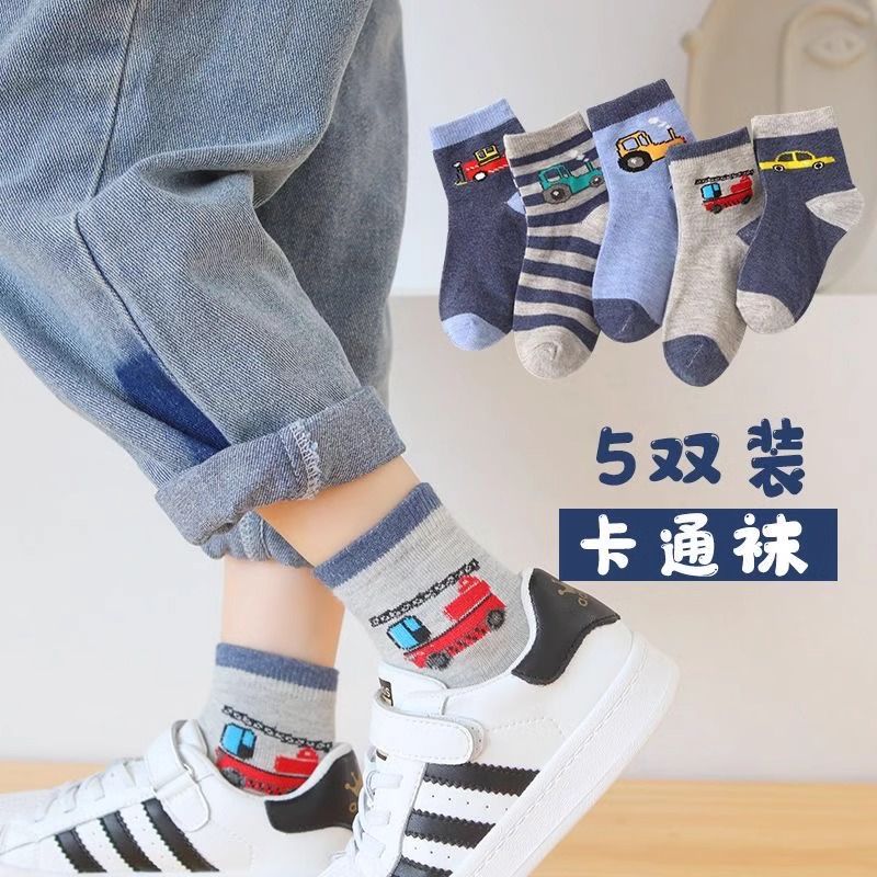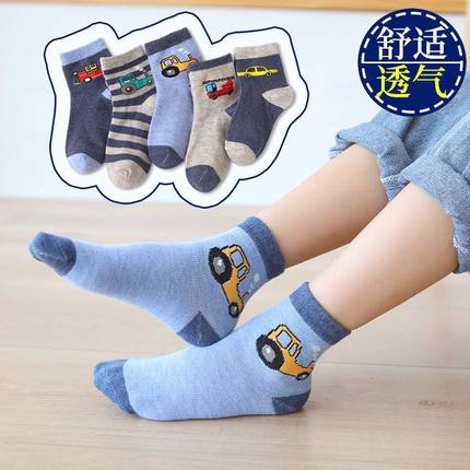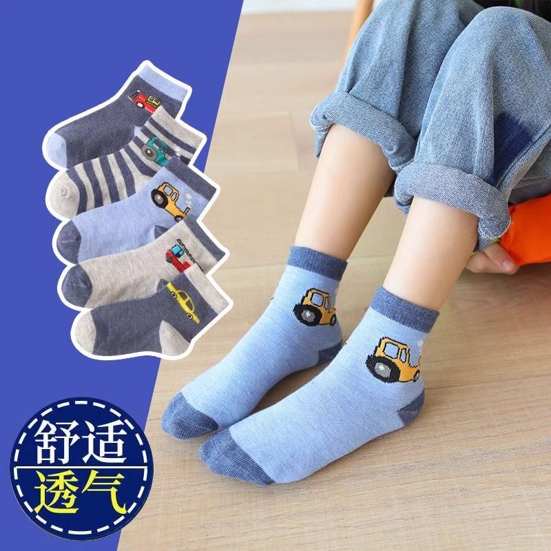 男童袜子春秋纯棉中筒袜卡通汽车儿童无骨袜透气款男孩男宝长袜