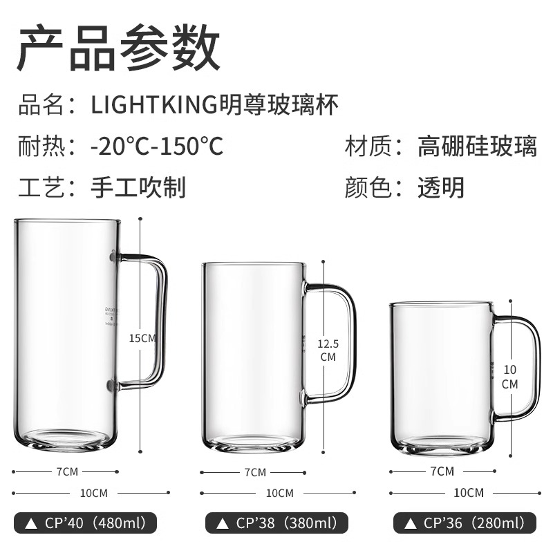 KAMJOVE/金灶明尊耐热透明玻璃杯加厚水杯带把手办公室花茶杯茶具