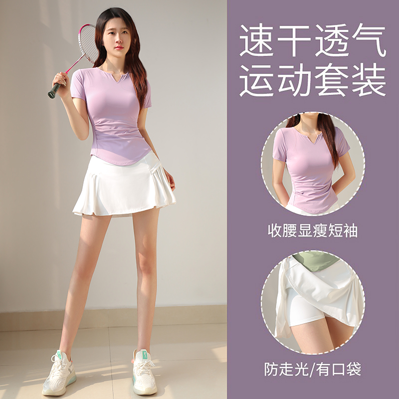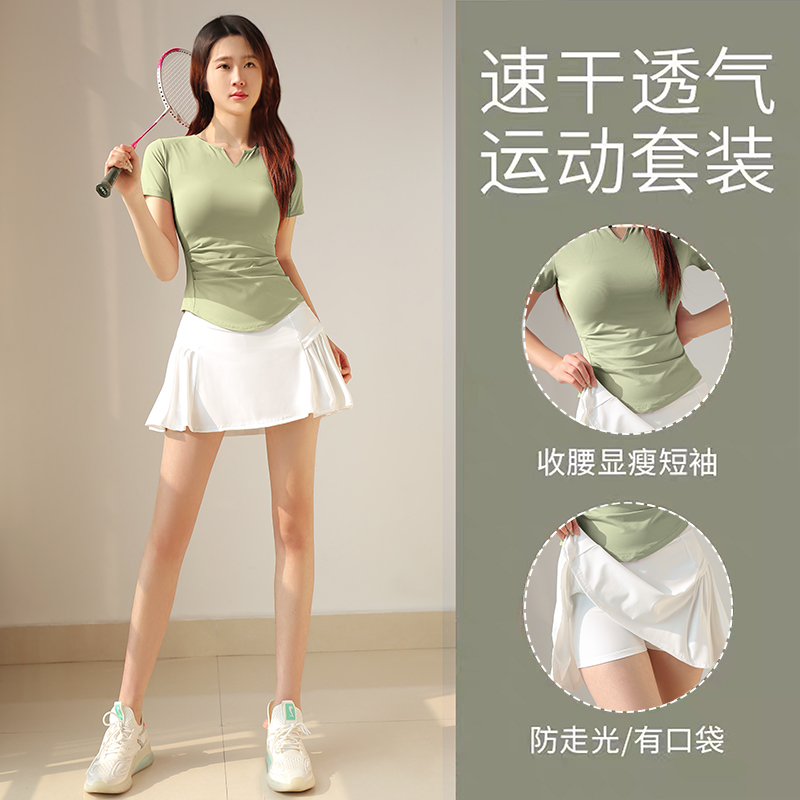 羽毛球服女壁球网球裙运动套装春夏季新款瑜伽上衣跑步短裙健身服