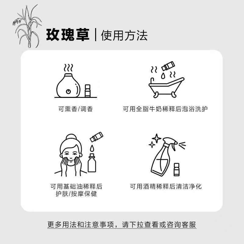 粤渝玫瑰草单方精油纯植物油