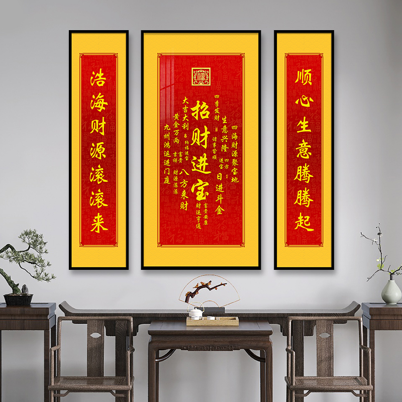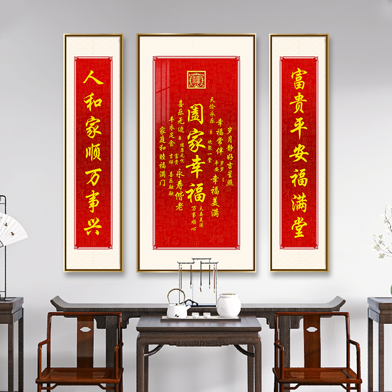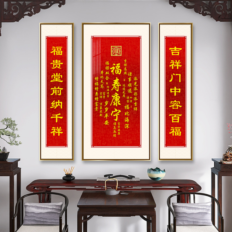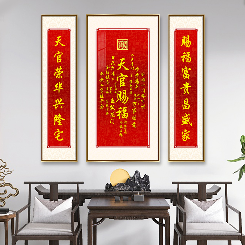 天官赐福中堂画客厅挂画农村堂屋大气福禄寿新中式新年三联装饰画