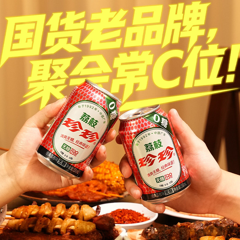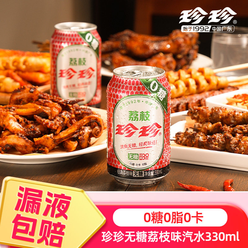 珍珍无糖荔枝味气泡水饮料碳酸饮料整箱汽水330ml*12罐汽水