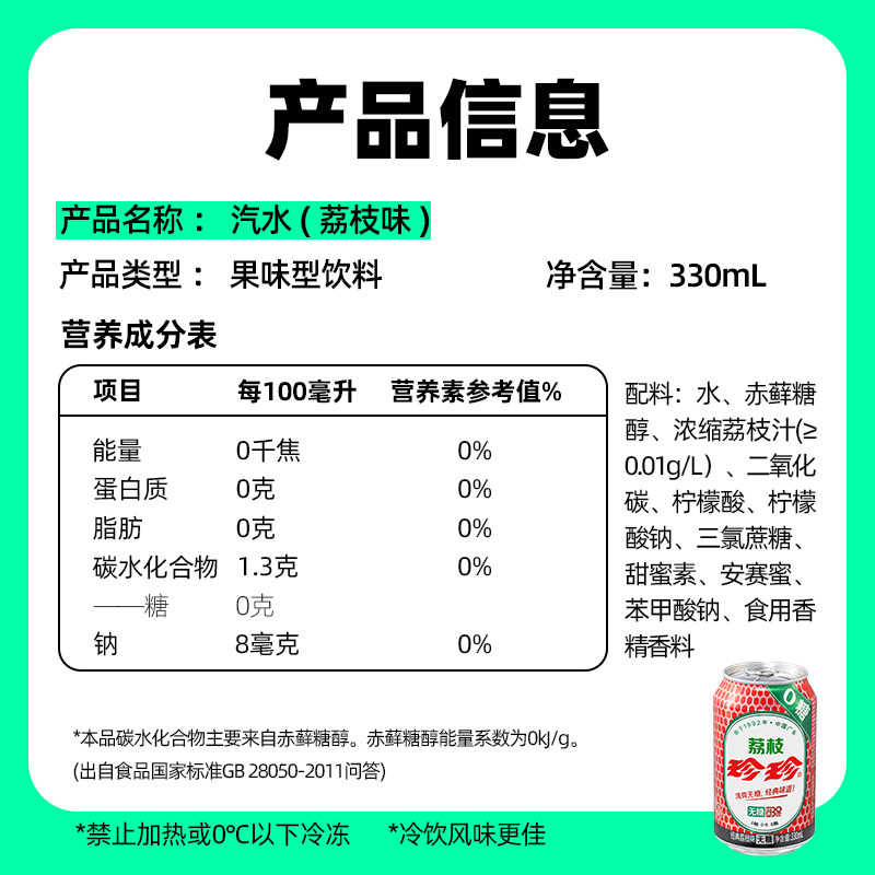 珍珍零糖荔枝味汽水:0糖0脂0卡