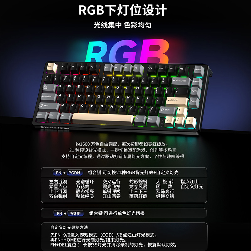 联想GK10机械键盘客制化极光80键无线三模蓝牙RGB电竞游戏专用