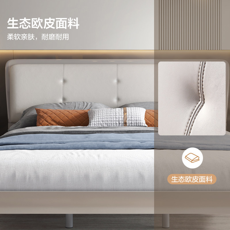 全友家居现代简约单人板式床主卧室实木边框双人床1米8软包大床