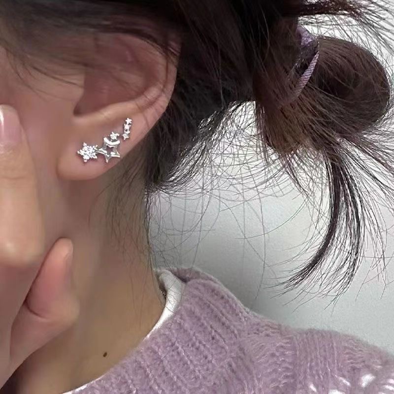 小众耳骨星星锆石耳钉女小众设计高级感五角星耳环百搭气质耳饰潮