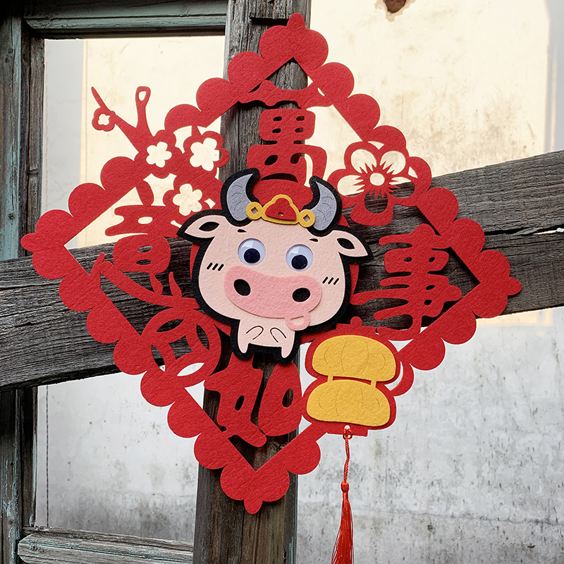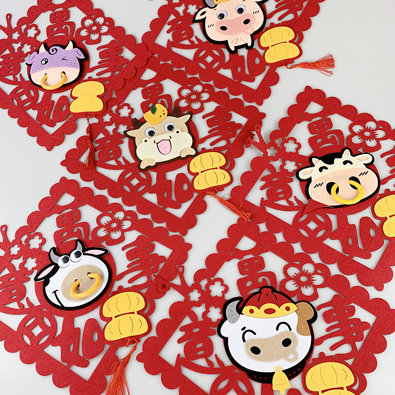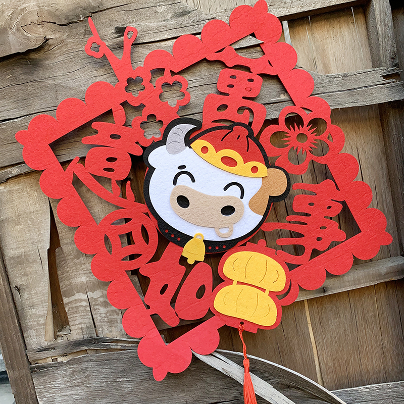 新年2022虎年装饰门贴小竖联挥春对联无纺布卡通福字玻璃窗花贴纸