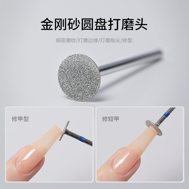 美甲飞碟打磨头修型短甲指尖打磨T型圆金刚砂金属打磨工具美甲店