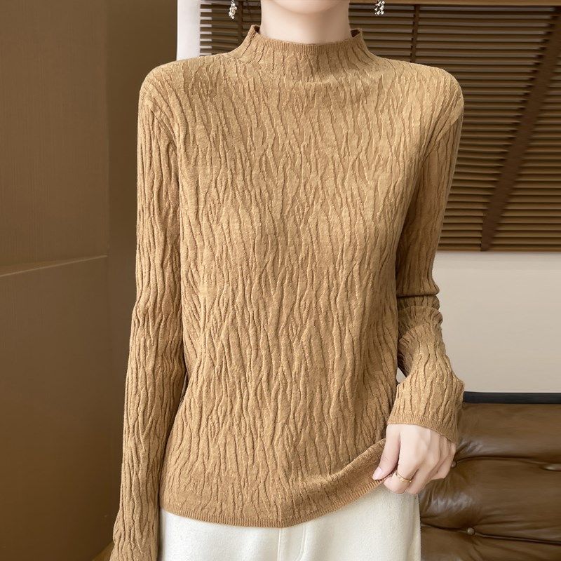 高级灰色半高领羊毛肌理内搭修身针织打底衫女2024冬季好看毛衣