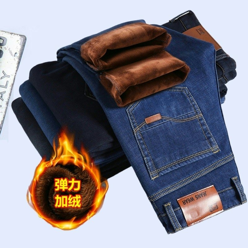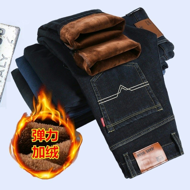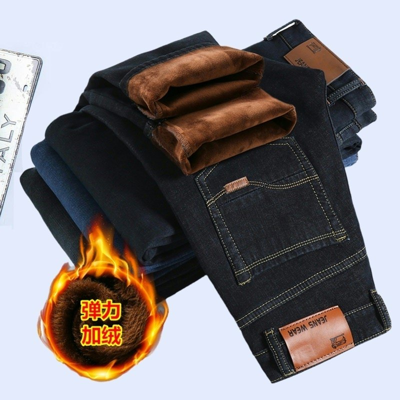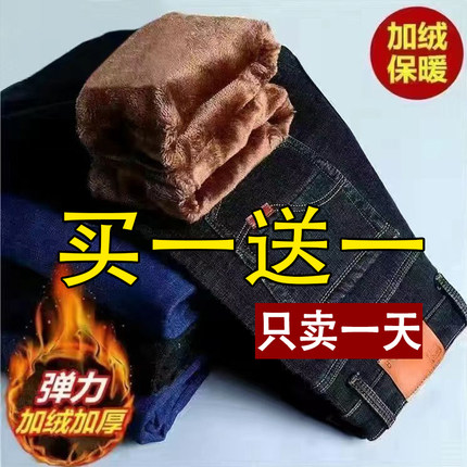 秋冬款弹力厚款加绒牛仔裤男冬天保暖带绒休闲男裤宽松大码干活裤