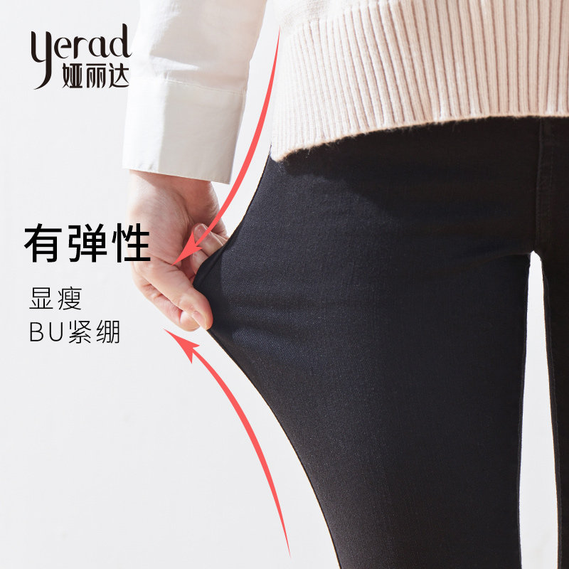 娅丽达女裤牛仔裤中腰秋季抓纹磨白九分裤铅笔裤蓝色 DK3123