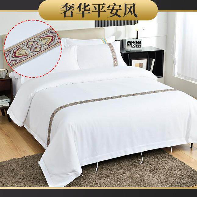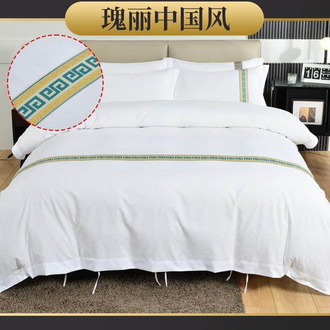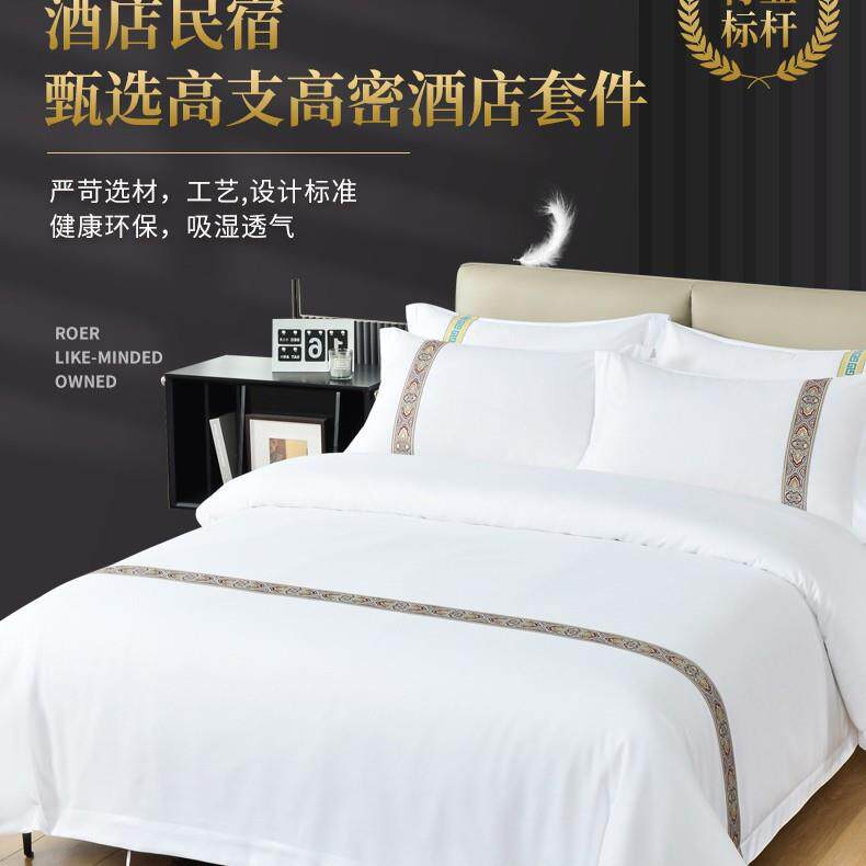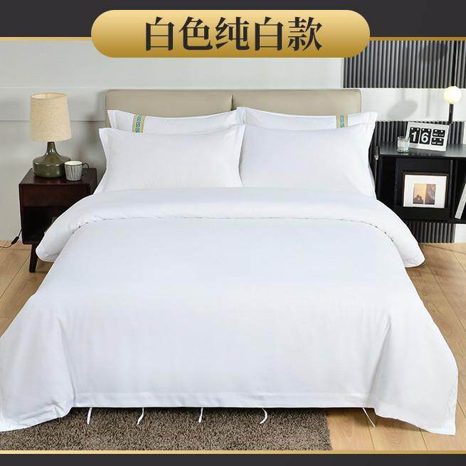 宾馆酒店布草民宿四件套客栈客房专用床上用品加厚纯白色床单被套