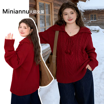 300斤特大码女装高级感过年穿搭红色毛衣女胖mm宽松减龄针织上衣
