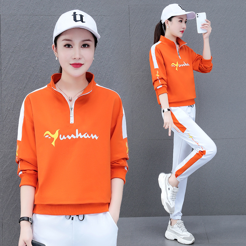 潮牌春秋冬季女士立领广场舞服装休闲运动套装宽松加绒跳舞两件套
