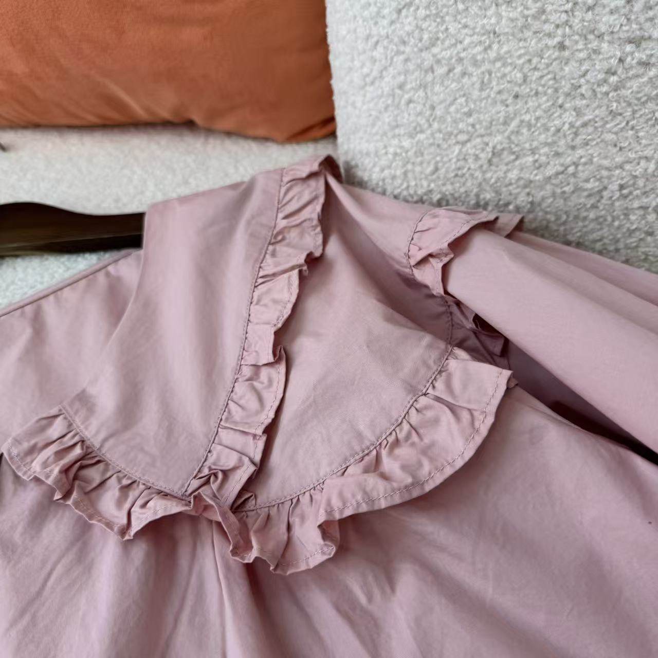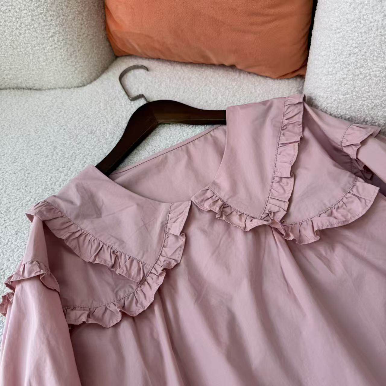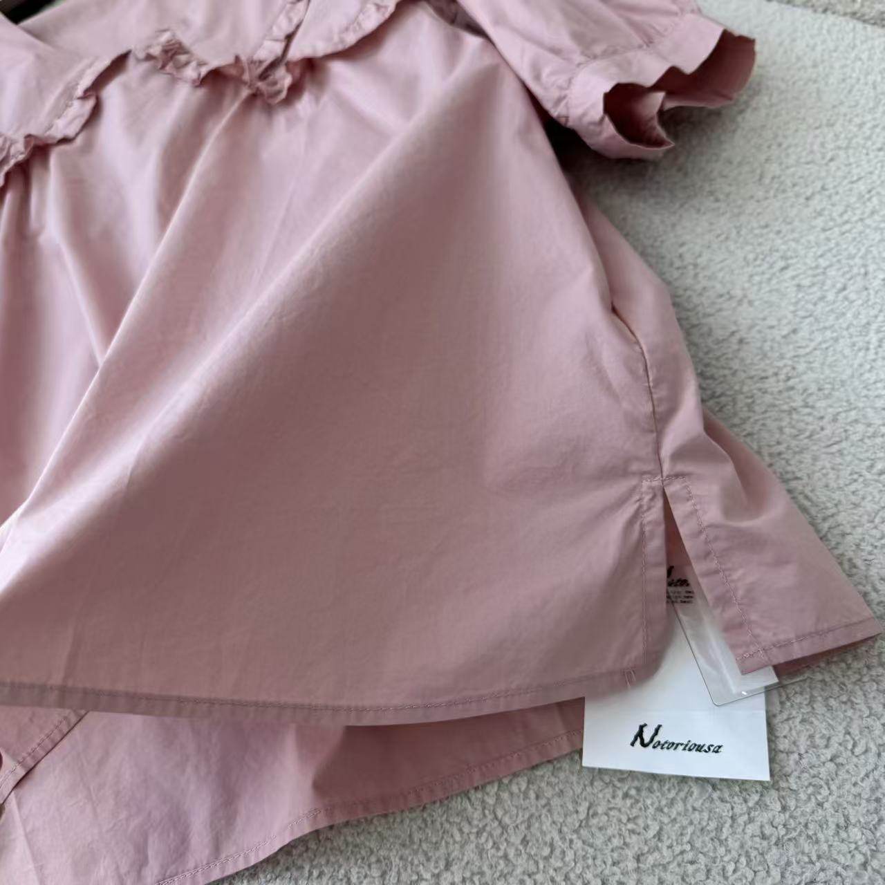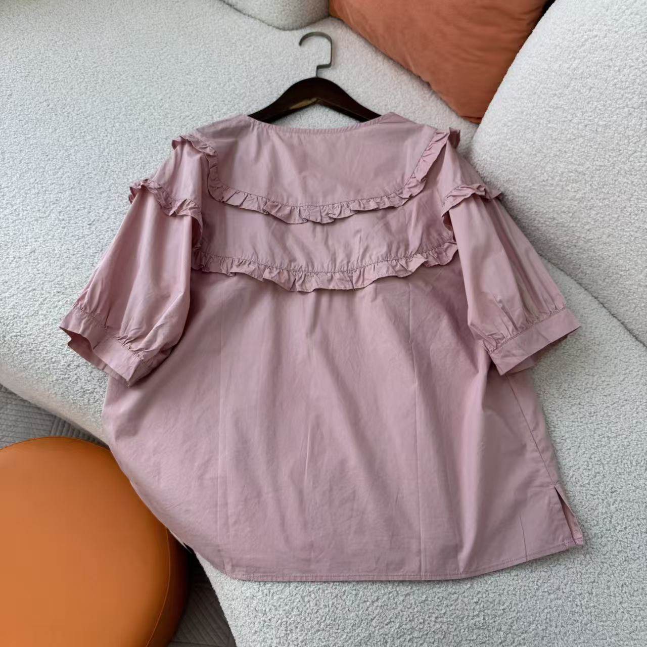 惠衣阁夏季女棉质短袖衬衫套头上衣韩版宽松休闲甜美木耳边衬衣
