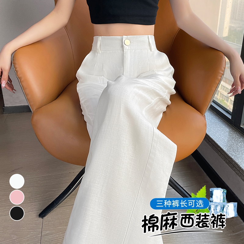 实拍2024夏季新款亚麻阔腿裤冰丝高腰直筒棉麻西装裤休闲裤女