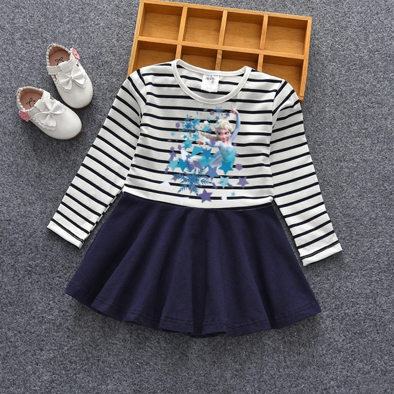 女童秋季长袖连衣裙2022新款小女孩洋气条纹圆领儿童春秋装裙子潮