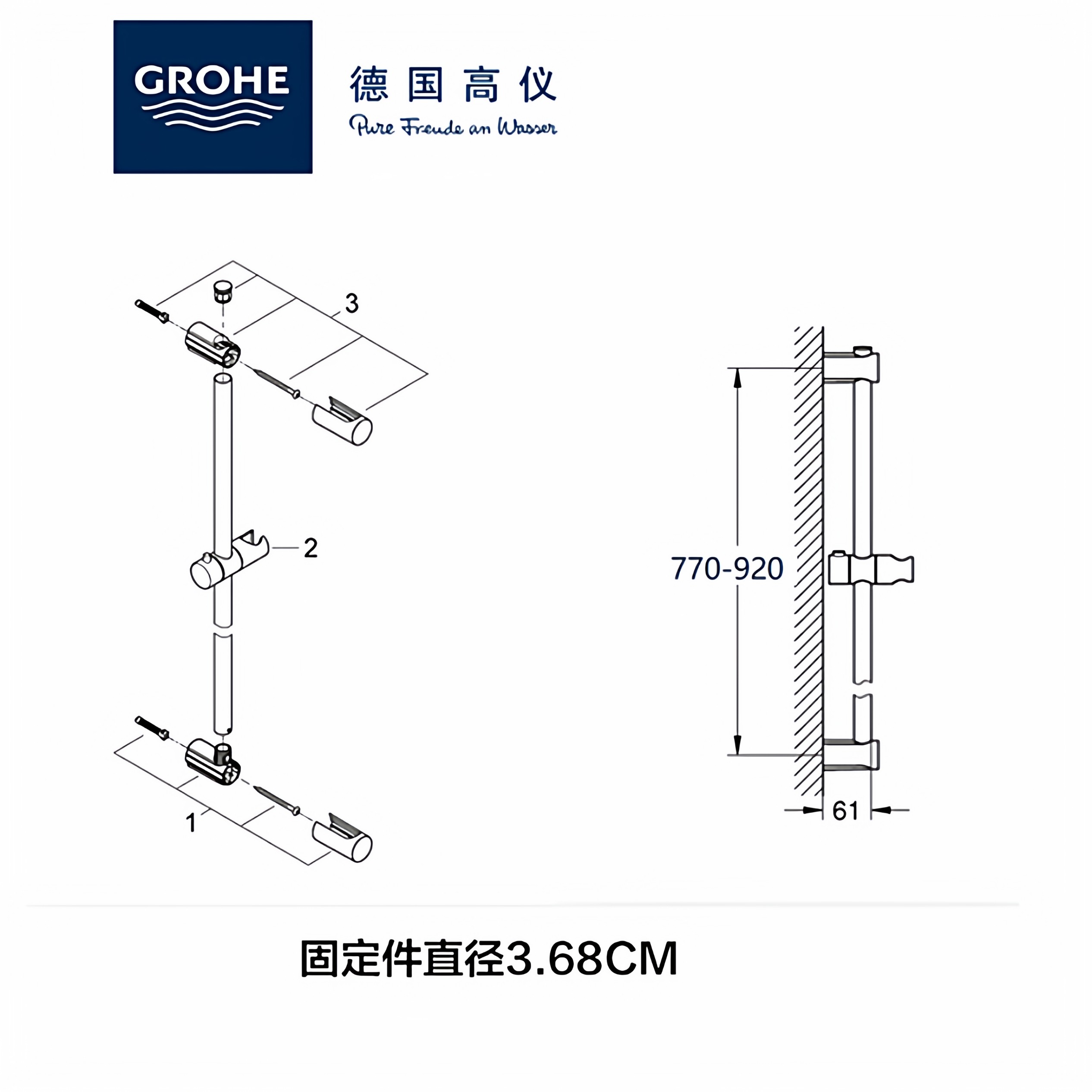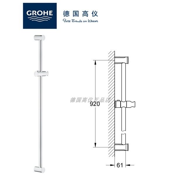 新品德国高仪花洒杆新天瀑通用升降杆900mm单杆全铜杆体27520000