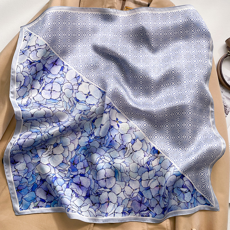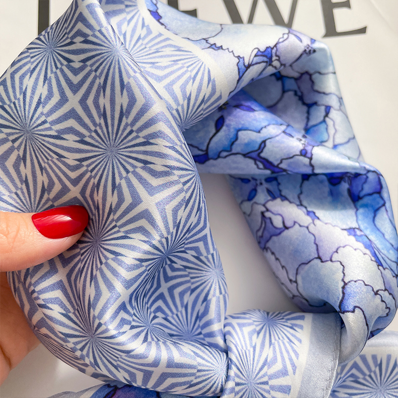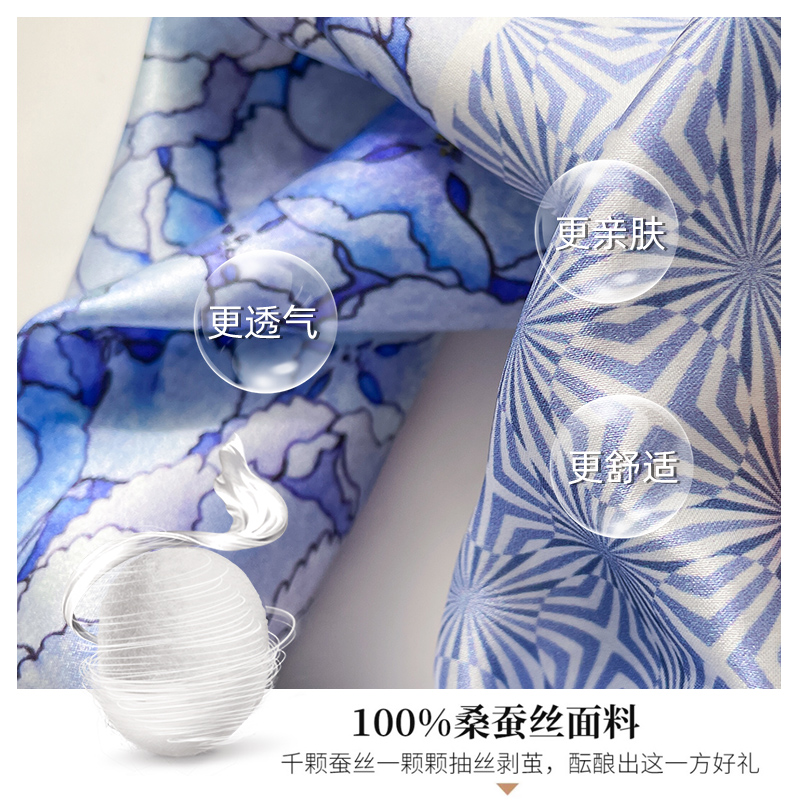 蓝色清新真丝小方巾女春秋季百搭桑蚕丝丝巾空姐领巾薄款妈妈围巾