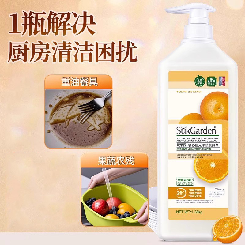 【香菇来了】蔬果园洗洁精洗碗水果蔬菜洗涤清洗剂餐具净1.28kg*2