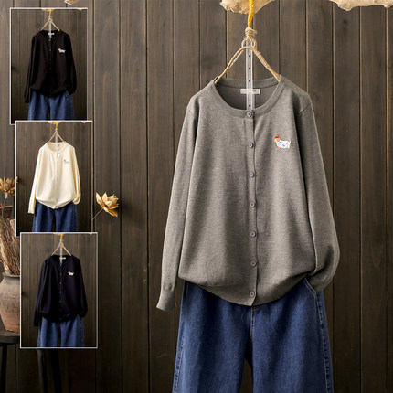 春秋大码200斤针织衫减龄开衫宽松显瘦休闲洋气刺绣薄毛衣外套潮
