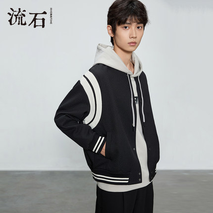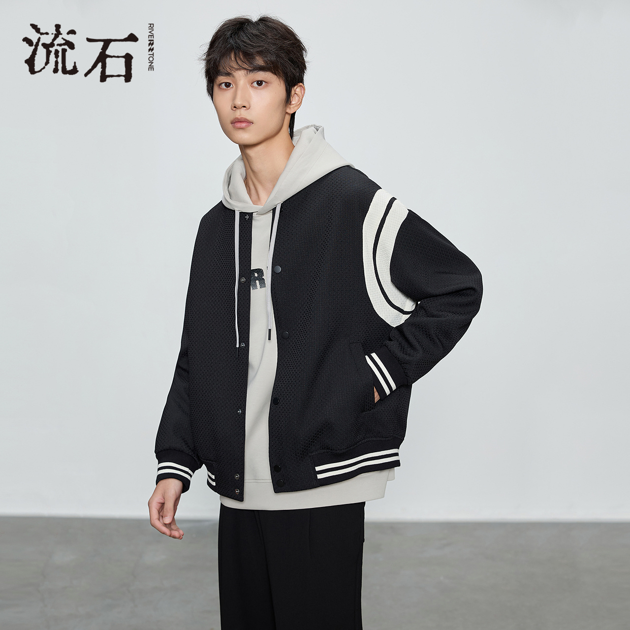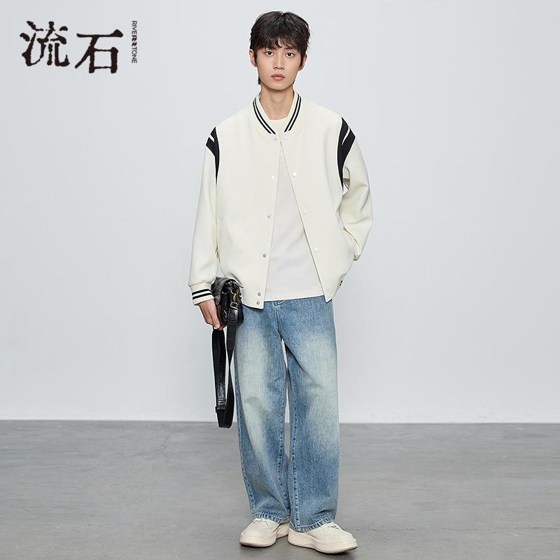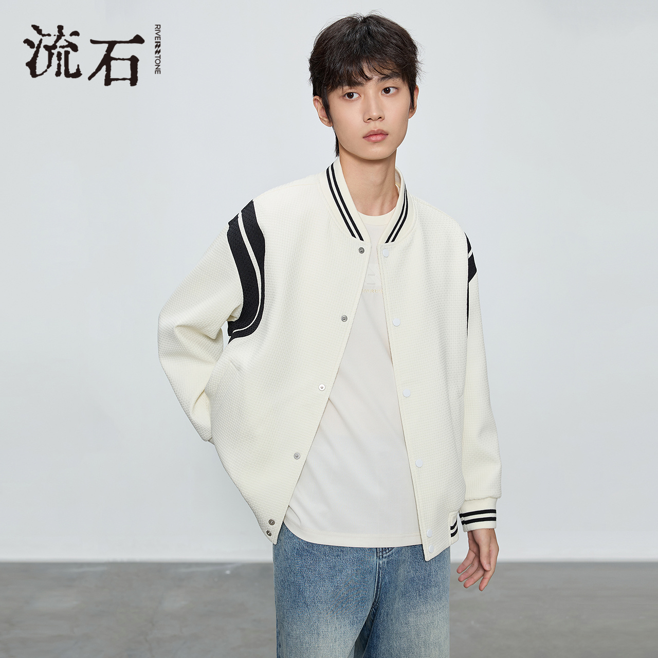 RS流石男装时尚拼色棒球服外套2025新款秋季设计感华夫格运动夹克