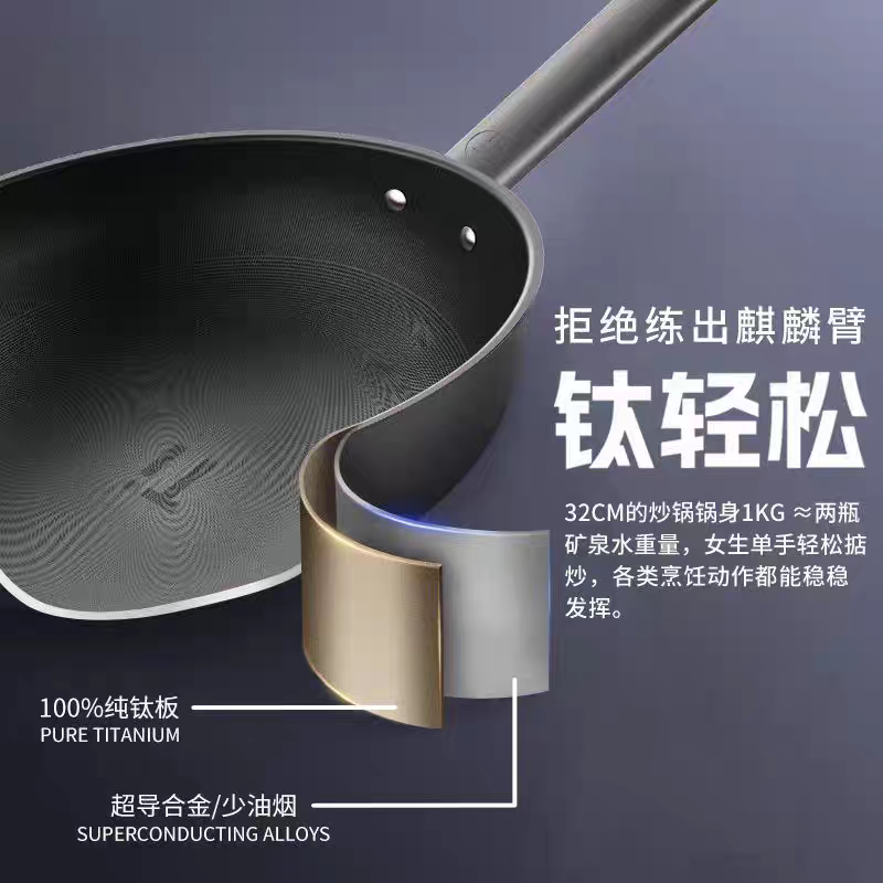 适用爱仕达纯钛炒锅无涂层轻量钛锅不粘锅电磁炉通用CT32/34Z6Q