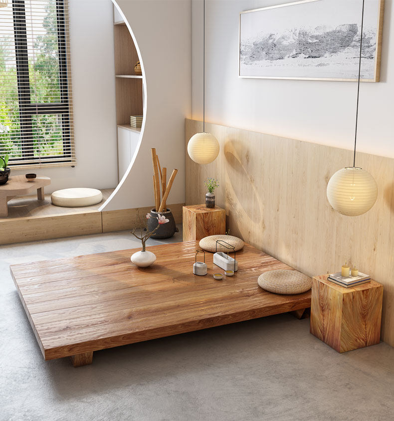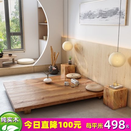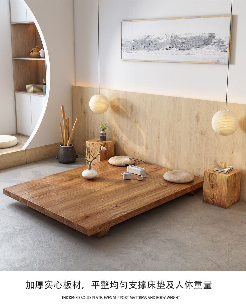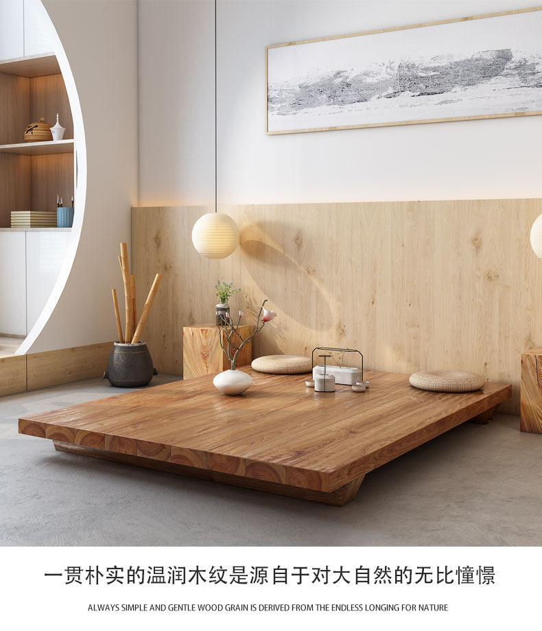 日式榻榻米实木床主卧室1.8米1.5米双人床落地台矮床酒店民宿诧寂