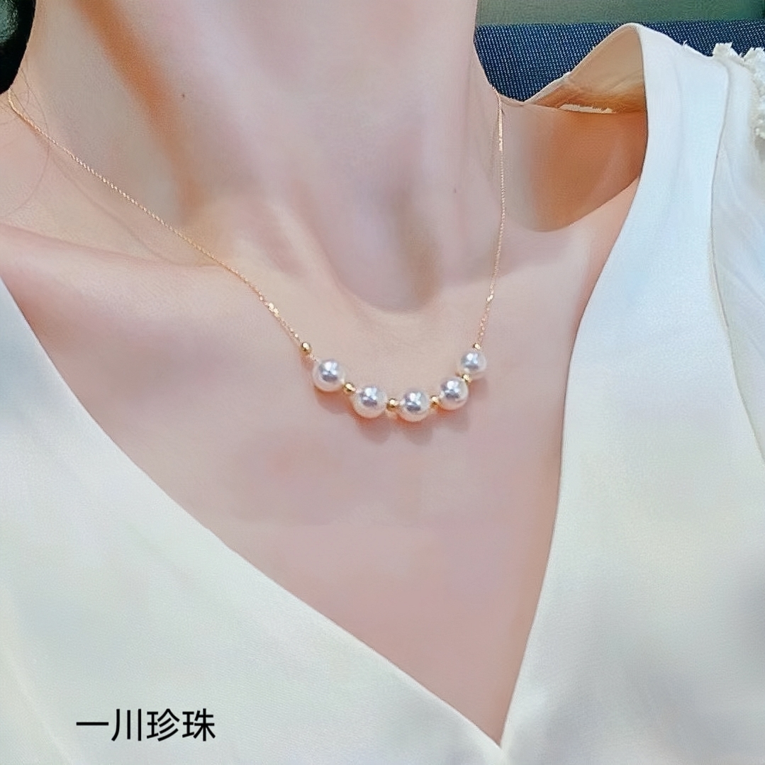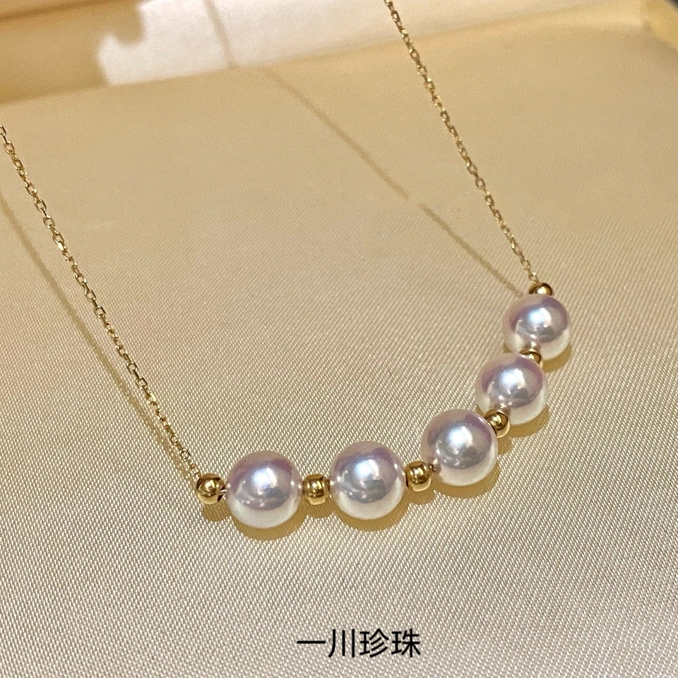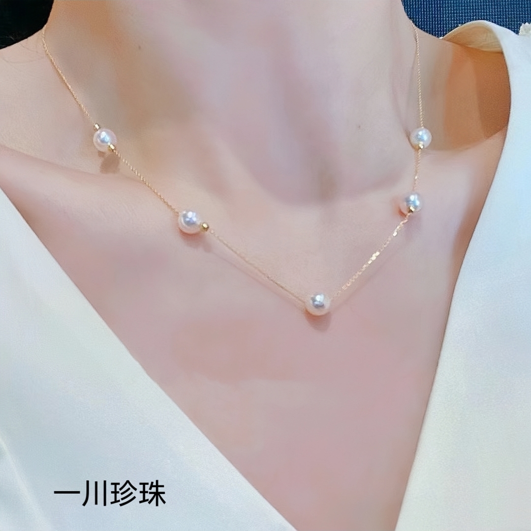 AKOYA海水珍珠项链18K金珠宝微笑链颈饰满天星吊坠多种戴法锁骨链