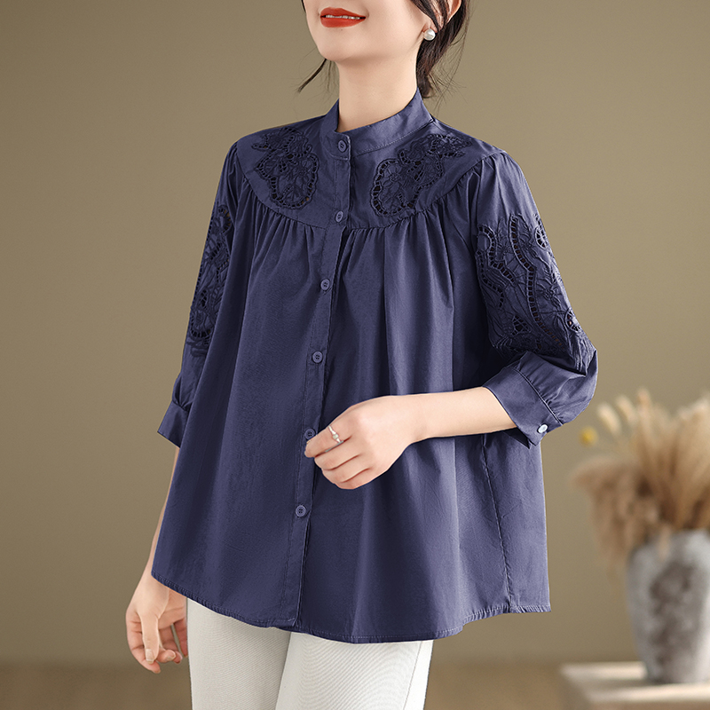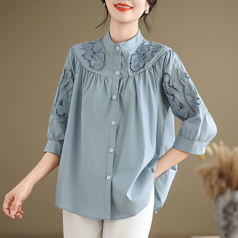 妈妈普宁衬衫女夏季新款爆款小衫减龄洋气高端显瘦宽松七分袖上衣