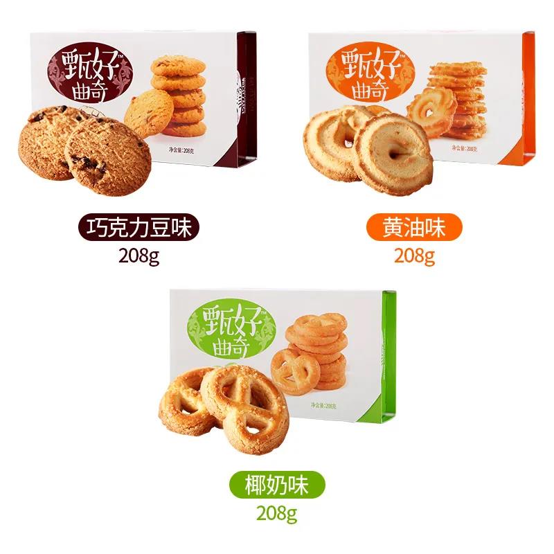 好吃点甄好曲奇208g*3盒多口味盒装休闲饼干黄油早餐礼盒零食包装
