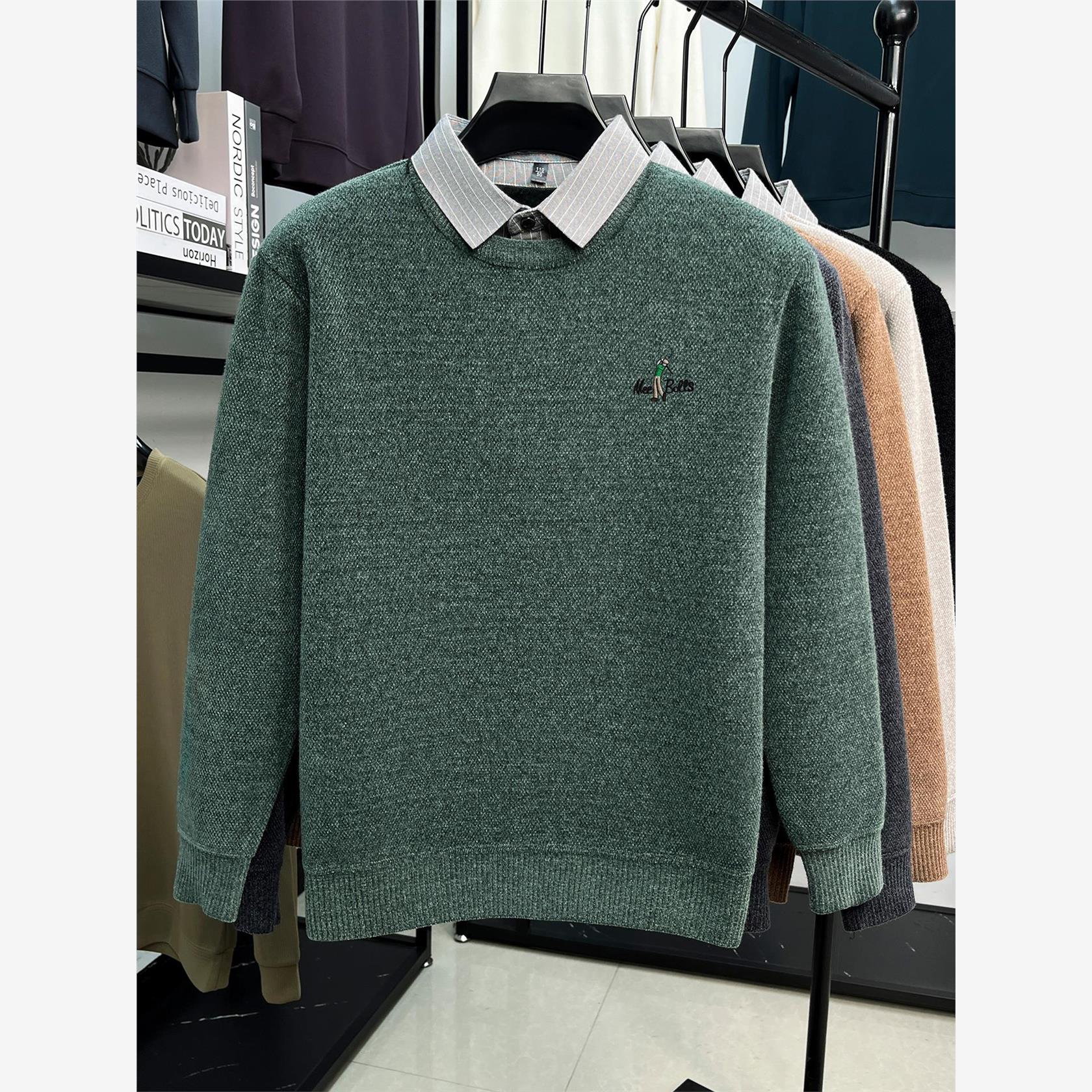 保罗【一体绒】加绒加厚男士毛衣2025新款衬衫领假两件冬季针织打