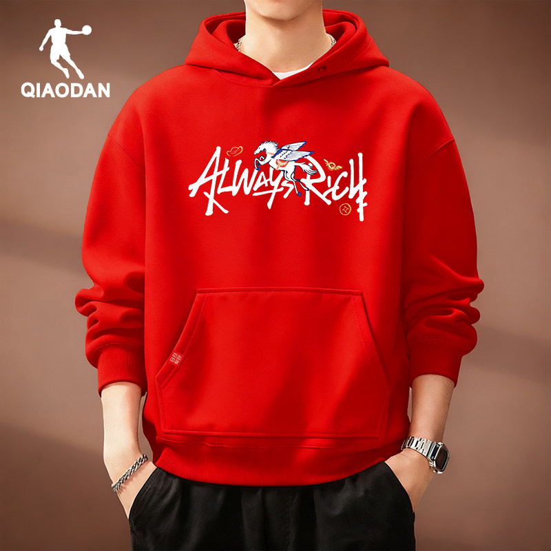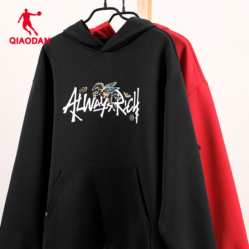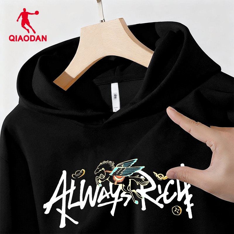 乔丹连帽卫衣男黑色宽松百搭上衣秋冬季男款长袖帽衫学生运动服男